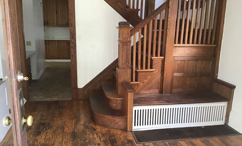This 3 bedroom 1 bath home has lots of space on main floor. Large bedrooms. Bedrooms are located on 2nd floor. Large kitchen.